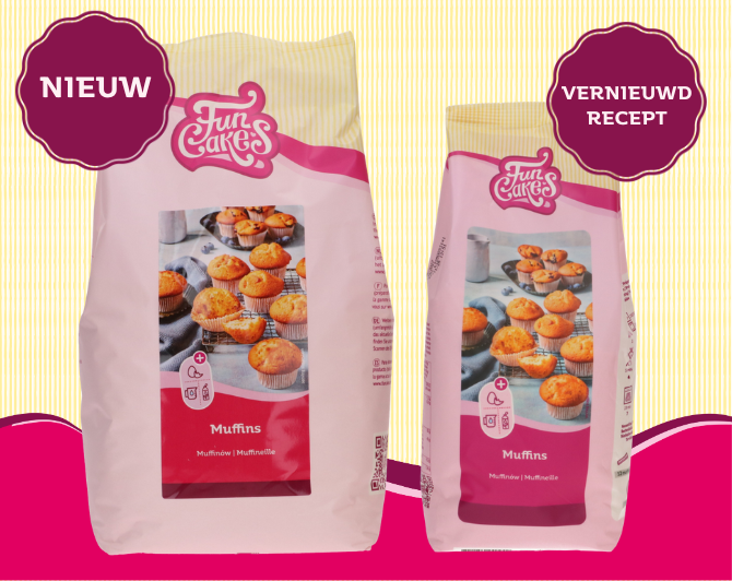 Naast het introduceren van nieuwe en trendy producten, werkt FunCakes we waar mogelijk ook voortdurend aan het verbeteren van het bestaande assortiment. Na een uitgebreide doorontwikkeling en vele testbaksels introduceren ze daarom vandaag de vernieuwde FunCakes Mix voor Muffins. De vernieuwing betreft een wijziging in de ingrediënten en de bereidingswijze, wat betekent dat je nu zelf eieren moet toevoegen en iets minder olie en water. In ruil daarvoor profiteer je van een prijsverlaging van maar liefst 24%! Bovendien blijven de muffins net zo smeuïg, luchtig en smaakvol als je gewend bent, beloofd!