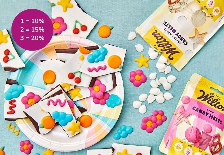 Envie de donner facilement à vos pâtisseries une touche finale colorée et festive ? Avec les Candy Melts, vous réalisez en un rien de temps de superbes drip cakes, spirales et décorations. Jusqu’au 16 janvier, profitez de remises progressives sur les Candy Melts : 10 % pour 1 produit, 15 % pour 2 produits et 20 % pour 3 produits.