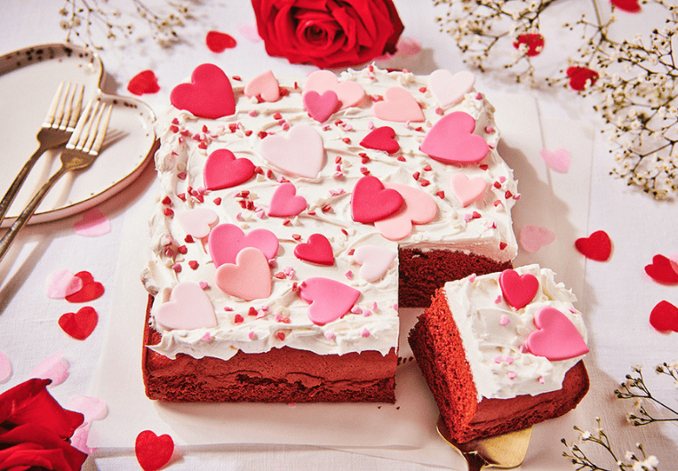 Vier Valentijnsdag met een heerlijke zelfgemaakte Valentijnstaart! Het maken van een Valentijnstaart doe je eenvoudig met de valentijn bakspullen van Deleukstetaartenshop en onze Valentijntaart recepten. Of bedenk zelf een leuke Valentijnstaart met onze rode fondant, roze drip, marsepeinen rozen en meer!